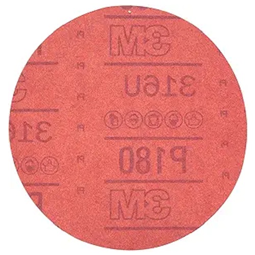 The 3M Hookit Red Abrasive Disc 01222 delivers dependable sanding performance for automotive bodywork, primer prep, and filler shaping. With P180 grit and a 6‑inch diameter, this disc offers a balanced cut — aggressive enough to shape filler or remove old paint, yet controlled for featheredging and prep work.